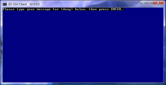 Selecting will send the broadcast message to SSH2/Telnet user doug. Selecting will abort the broadcast message. The message will be displayed on the client terminal similar to the figure below.