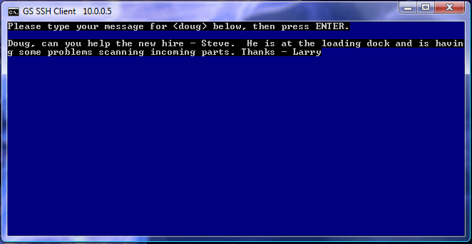 Enter the text that you would like to send to user doug and press enter when the message is complete.