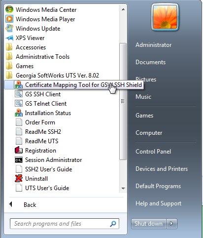 Open the GSW Certificate Mapping Tool. START|All Programs| Georgia SoftWorks UTS|Certificate Mapping Tool |