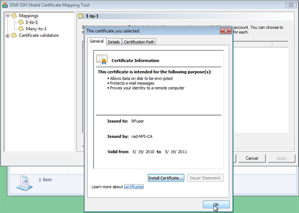 | Step 4 | "The certificate you selected" dialog opens, displaying General information about the certificate.